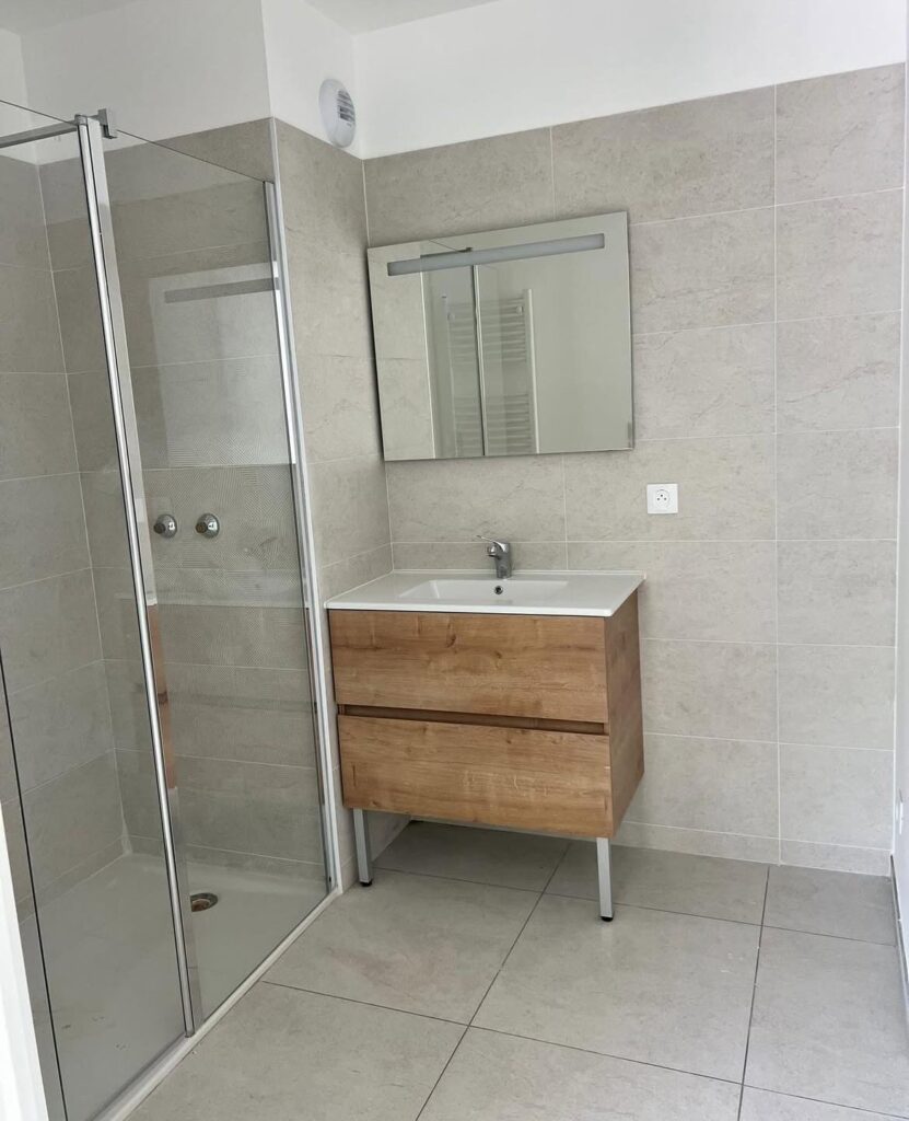 En tant que carreleur, j’ai eu le plaisir de réaliser le carrelage du hall d’entrée et de l’appartement témoin. Un travail réalisé avec soin, dans le respect des exigences du promoteur et du standing de cette belle opération.